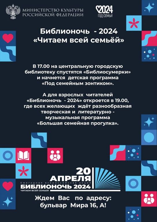 Всероссийская акция пройдет в центральной городской библиотеке 20 апреля и станет частью мероприятий, посвященных Году семьи, объявленному Президентом России.