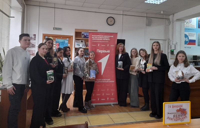 131 В рамках Международного Дня книгодарения и IX Общероссийской акции «Дарите книги с любовью» куратор первичного отделения ЦГБ им. А.С. Пушкина совместно с 132 председателем местного отделения Движения первых Георгиевского муниципального округа Мариной Малашихиной провели путешествие в книжный мир «Моя любимая книга».