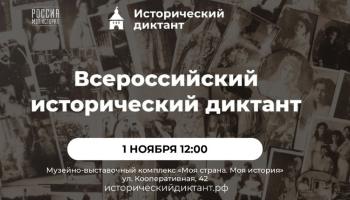 Ежегодная просветительская акция пройдет 1 ноября сразу в офлайн и онлайн форматах. Исторический парк «Россия – моя история» ждет всех, кто готов проверить свои знания. Старт диктанта – в 12:00. Справки по телефону 8 (8793) 36-40-71.